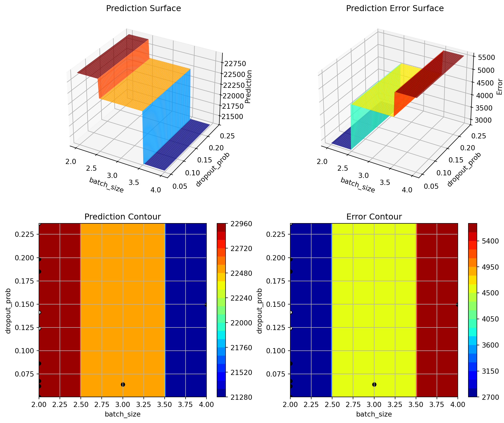 res = spot_tuner.run()print_res_table(spot_tuner)spot_tuner.plot_important_hyperparameter_contour(max_imp=3)