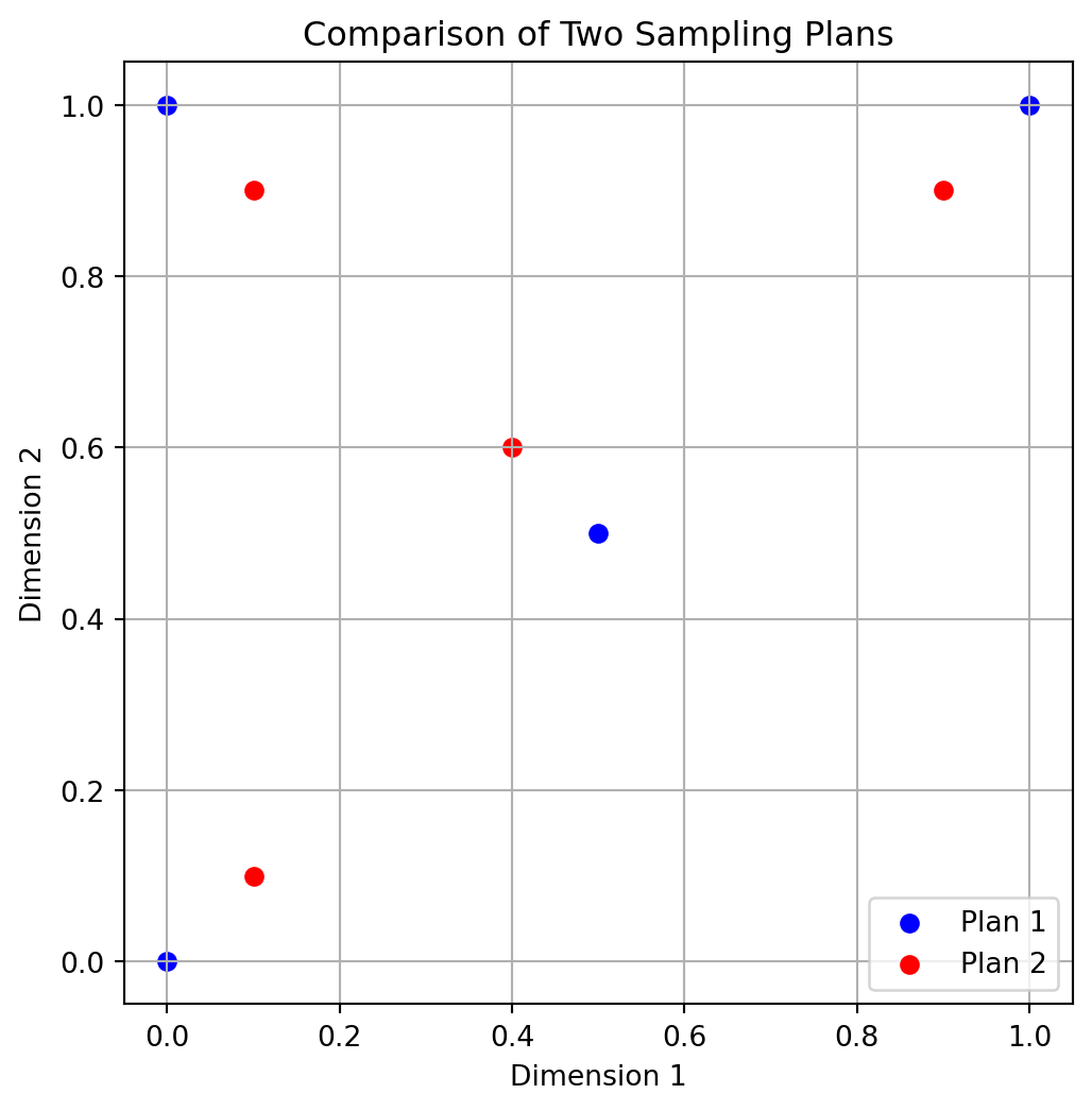 The goal of a sampling plan is to efficiently explore the input space to understand the behavior of the computer code and build a surrogate model that accurately represents the code’s behavior. Traditionally, Response Surface Methodology (RSM) has been used to design sampling plans for computer experiments. These sampling plans are based on procedures that generate points by means of a rectangular grid or a factorial design.