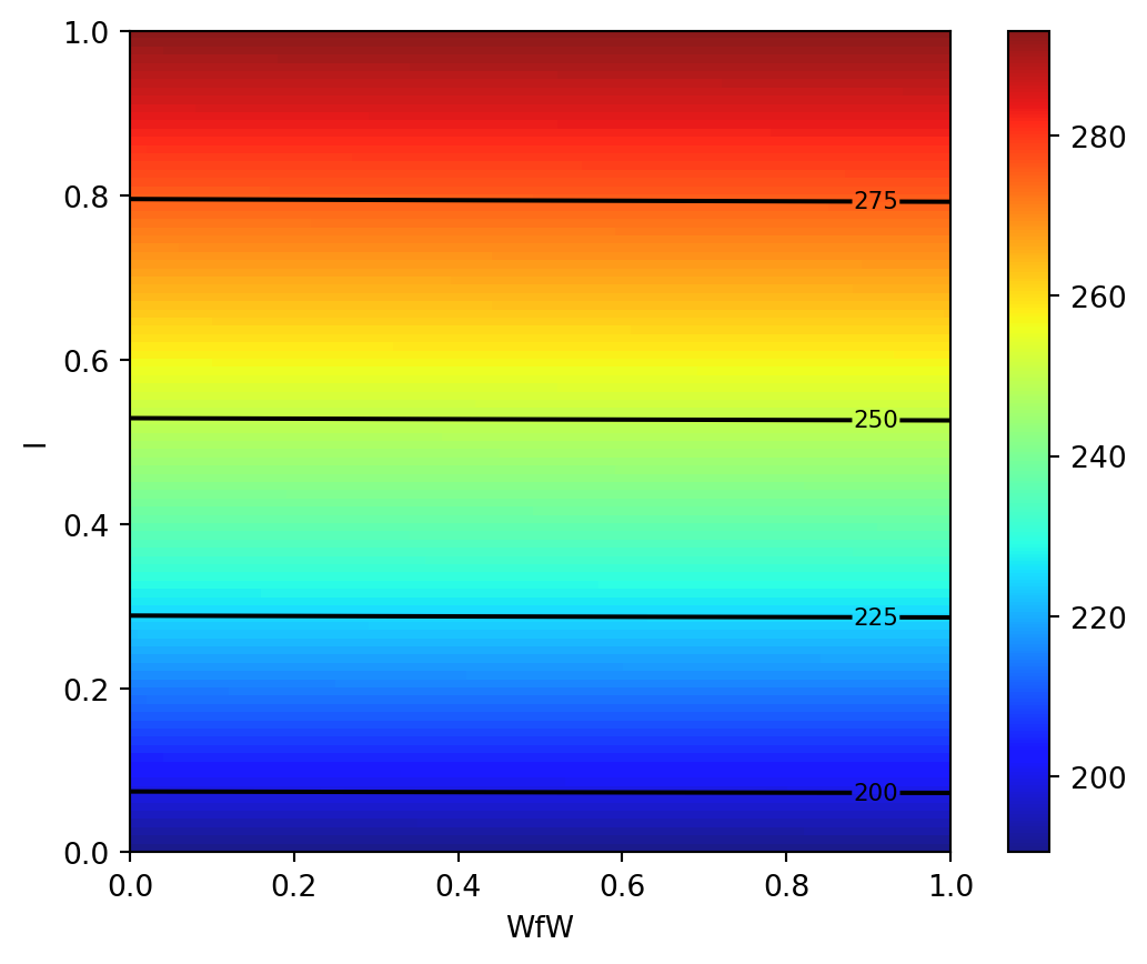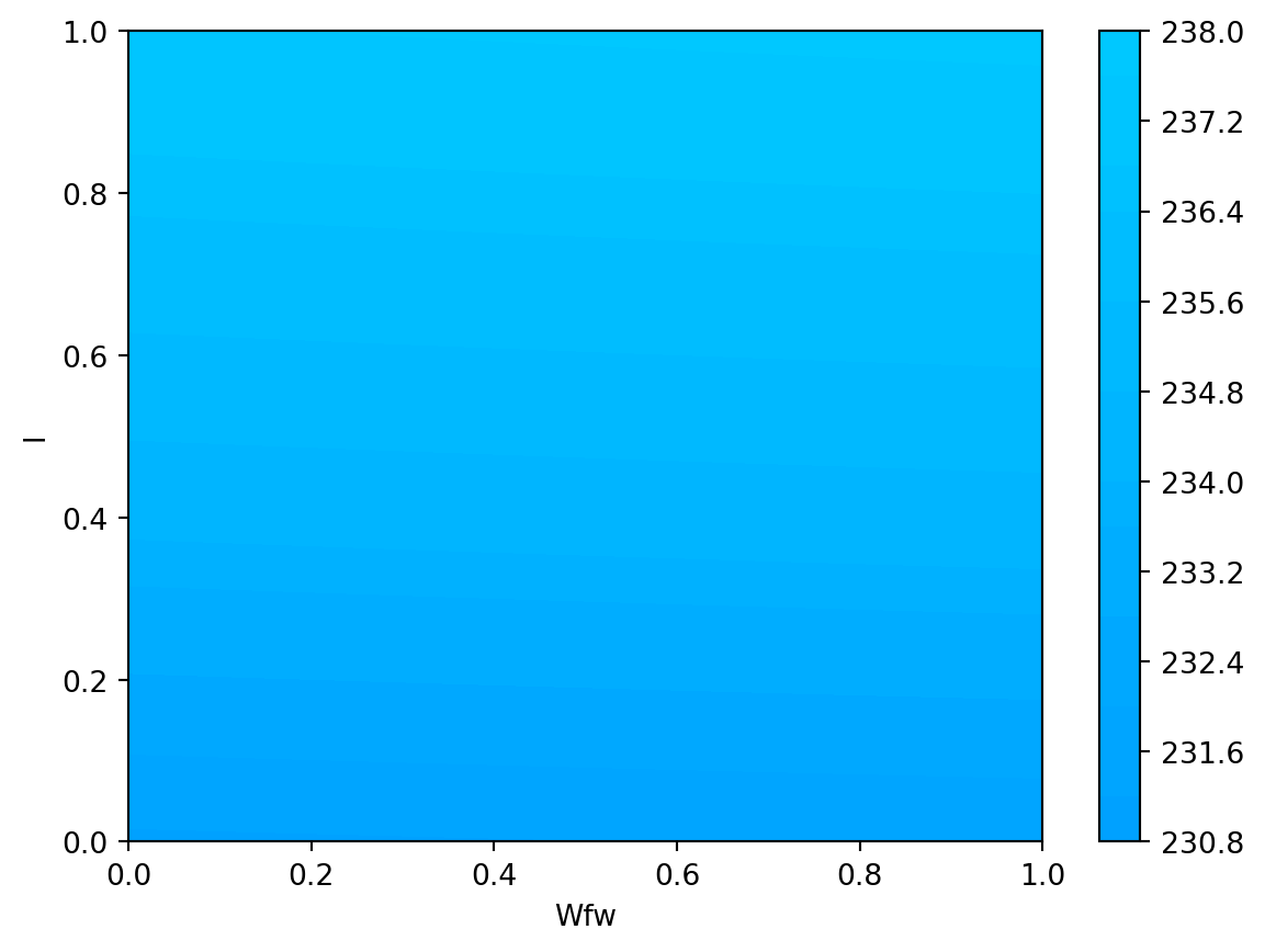 - Let’s plot the second example, taper ratio \(\lambda\) and fuel weight \(W_{fw}\)