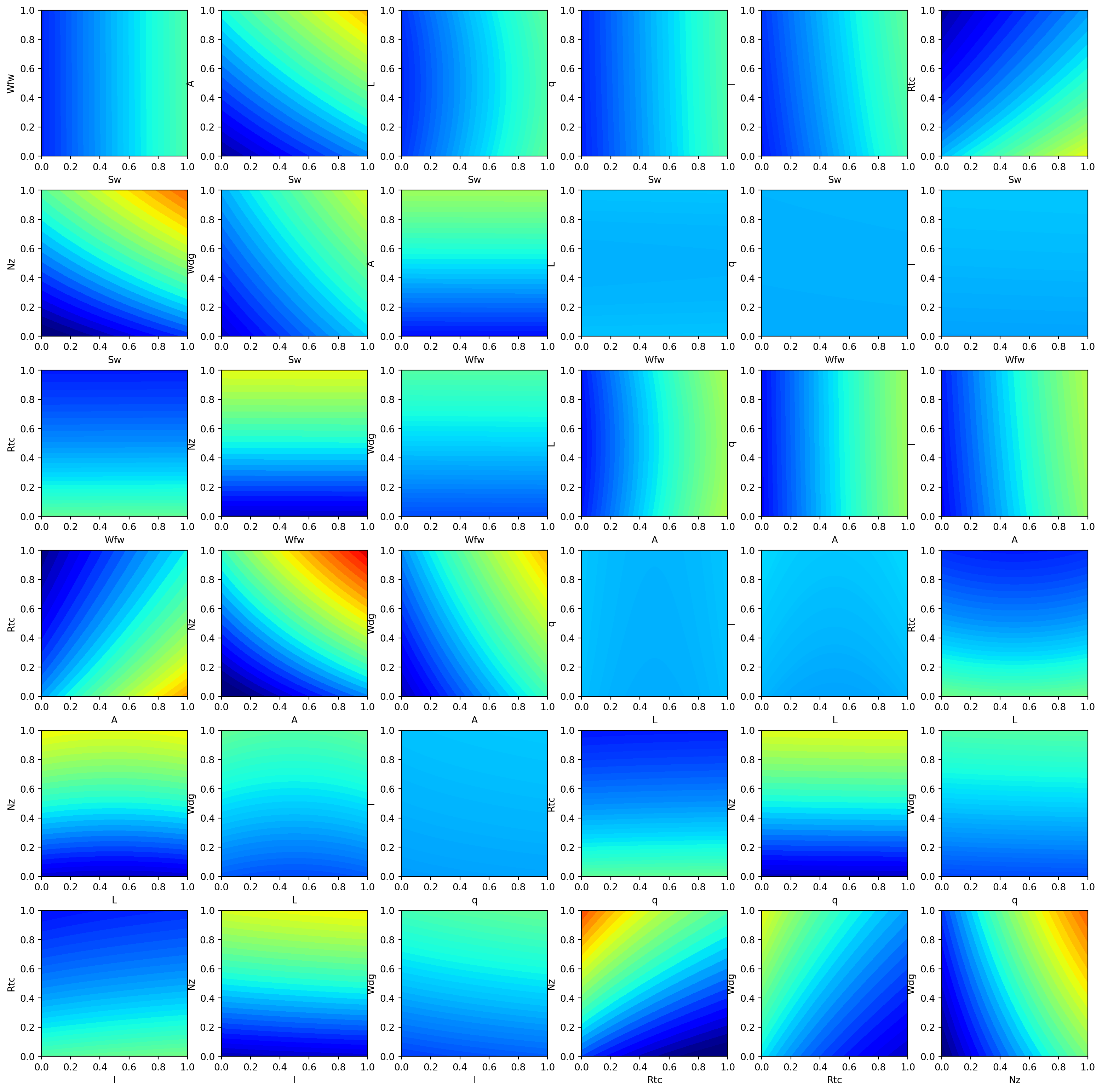 - Using a global colormap indicates that these variables have minor effects on the wing weight.