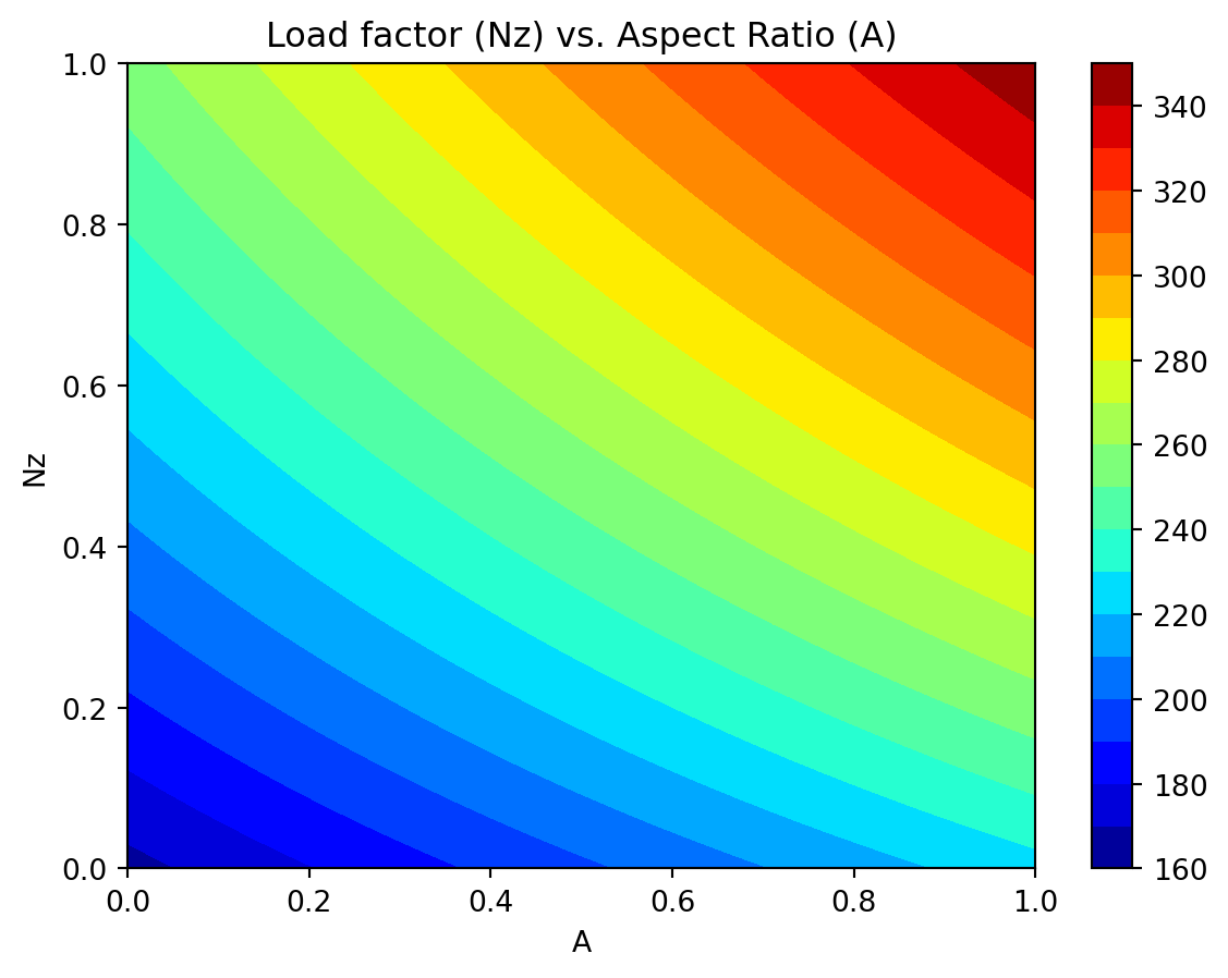 X, Y = np.meshgrid(x, y)25.5 Plot 1: Load Factor (\(N_z\)) and Aspect Ratio (\(A\))