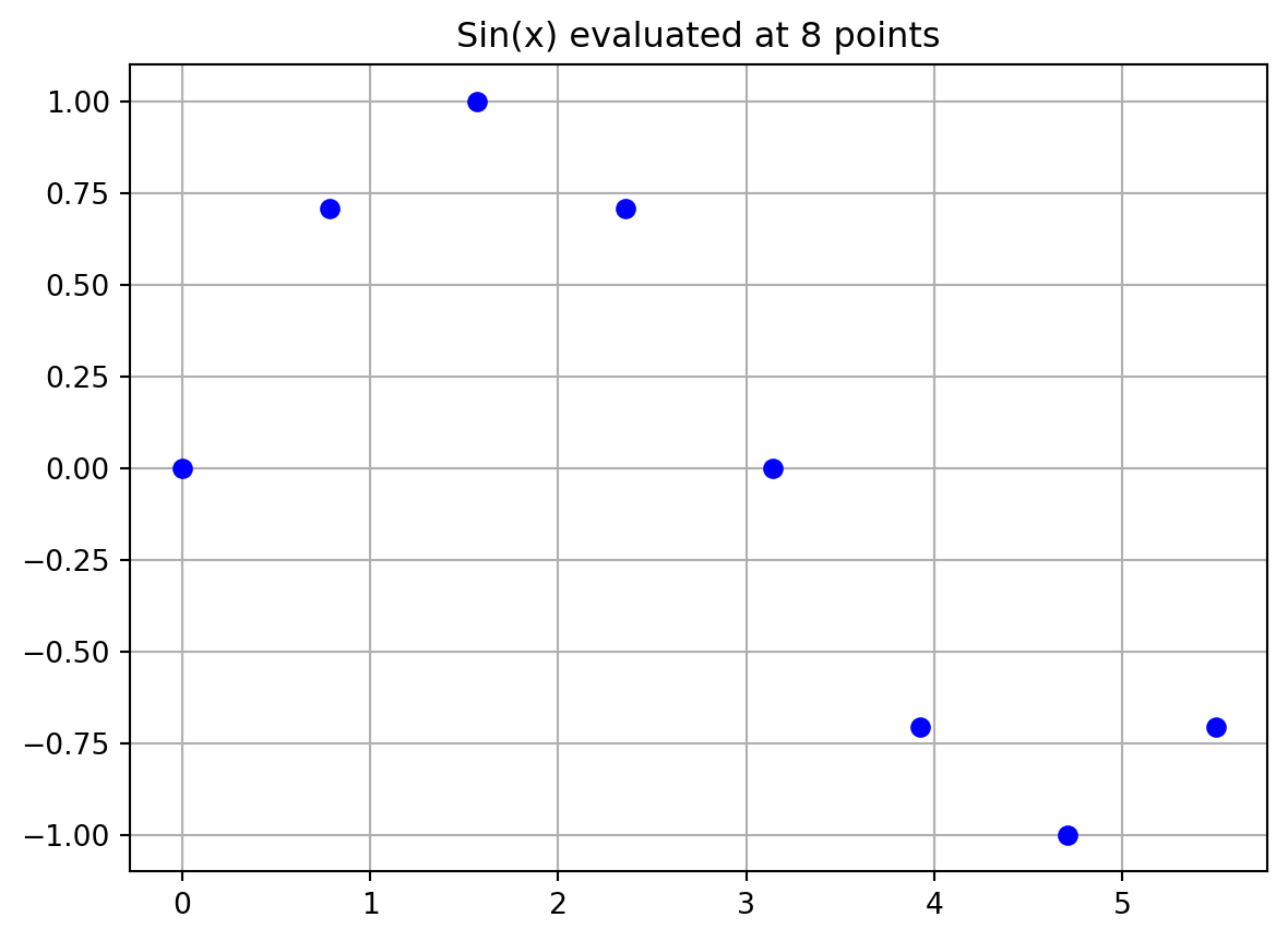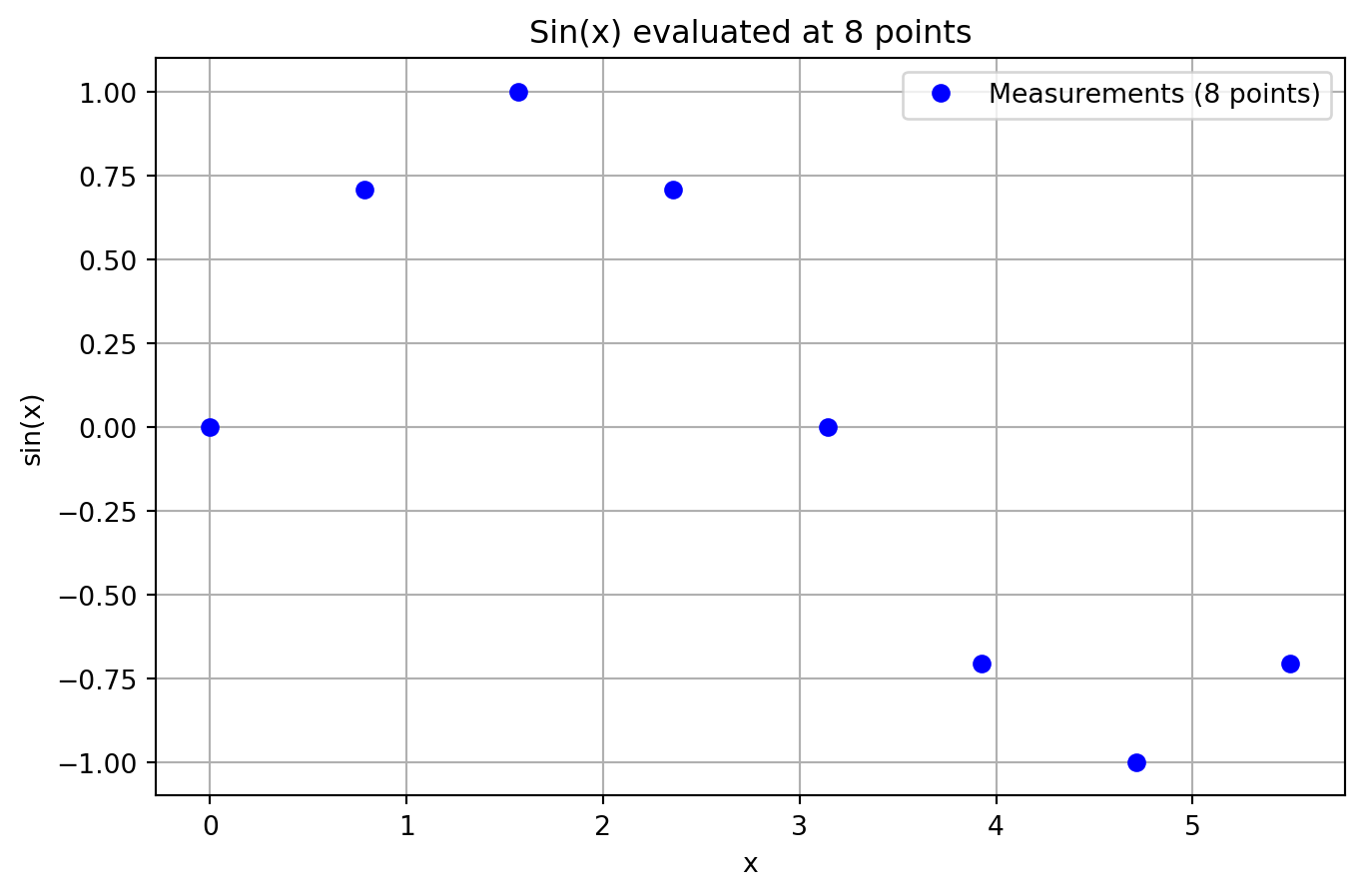 # The example uses a 1D sinusoid measured at eight equally spaced x-locations [153, Table 9.1].