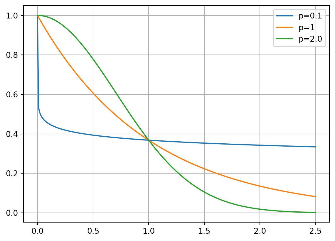 - two points move far apart, then \(|x_j^{(i)} - x_j| \to \infty\) and \(\exp \left(-|x_j^{(i)} - x_j|^{p_j} \right) \to 0\) (these points show very low correlation).