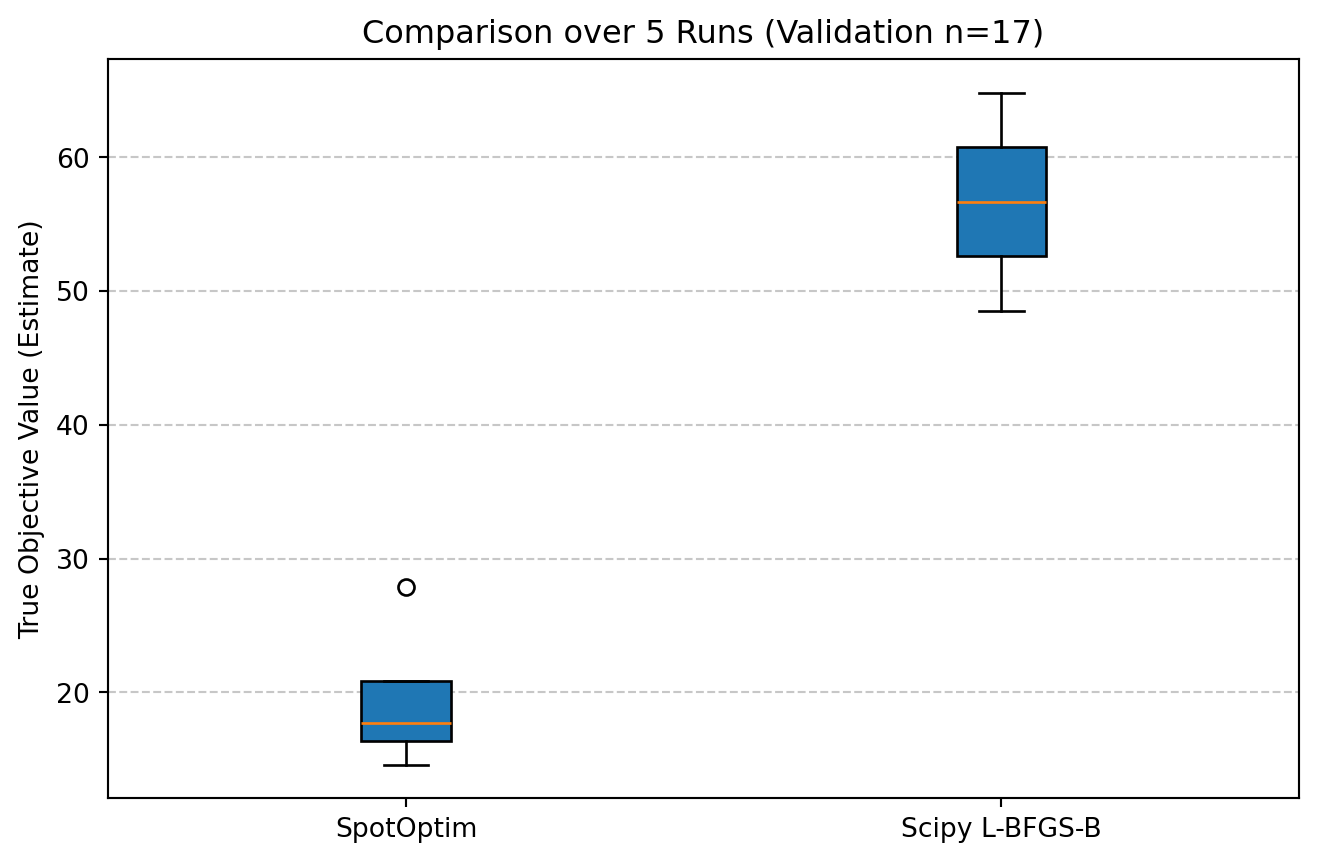 print(f" SpotOptim Mean: {np.mean(final_means_spot):.4f} (std: {np.std(final_means_spot):.4f})")