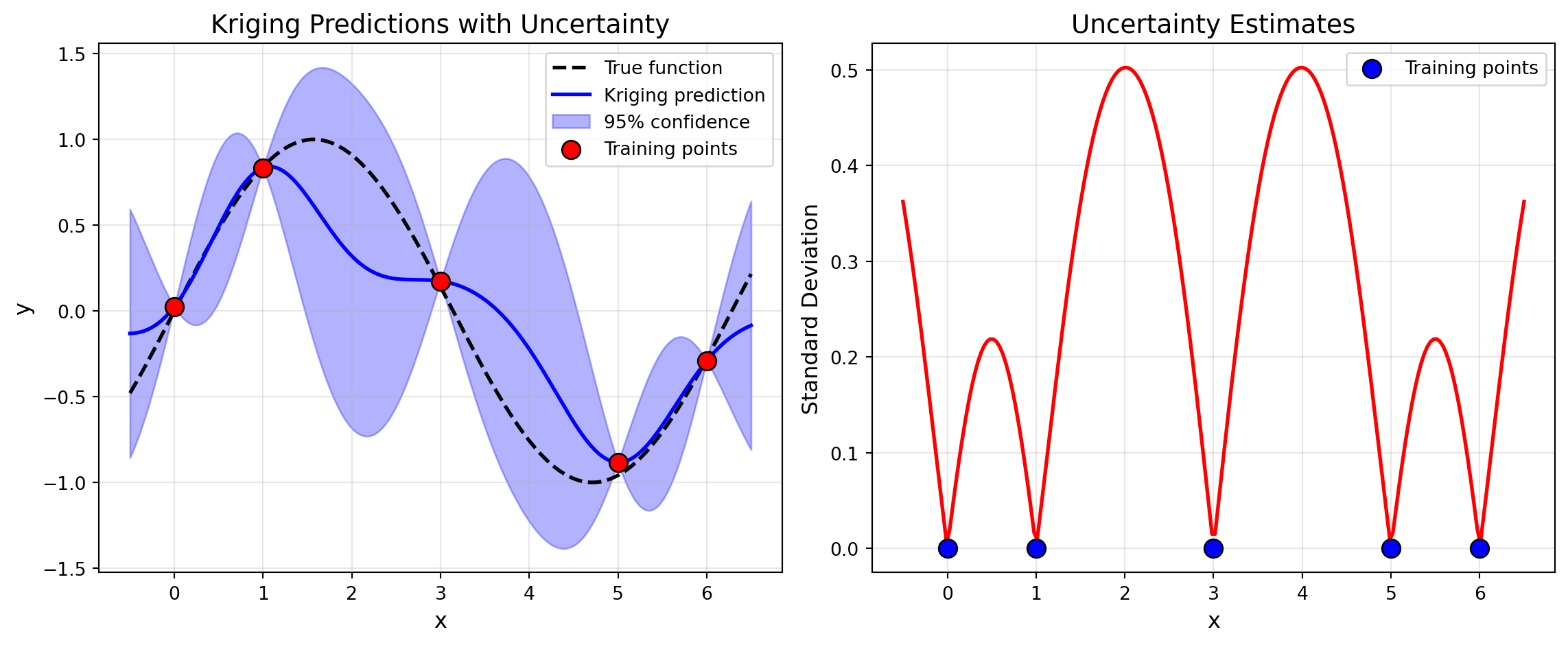 print("- This guides acquisition functions (e.g., EI exploits low uncertainty)")