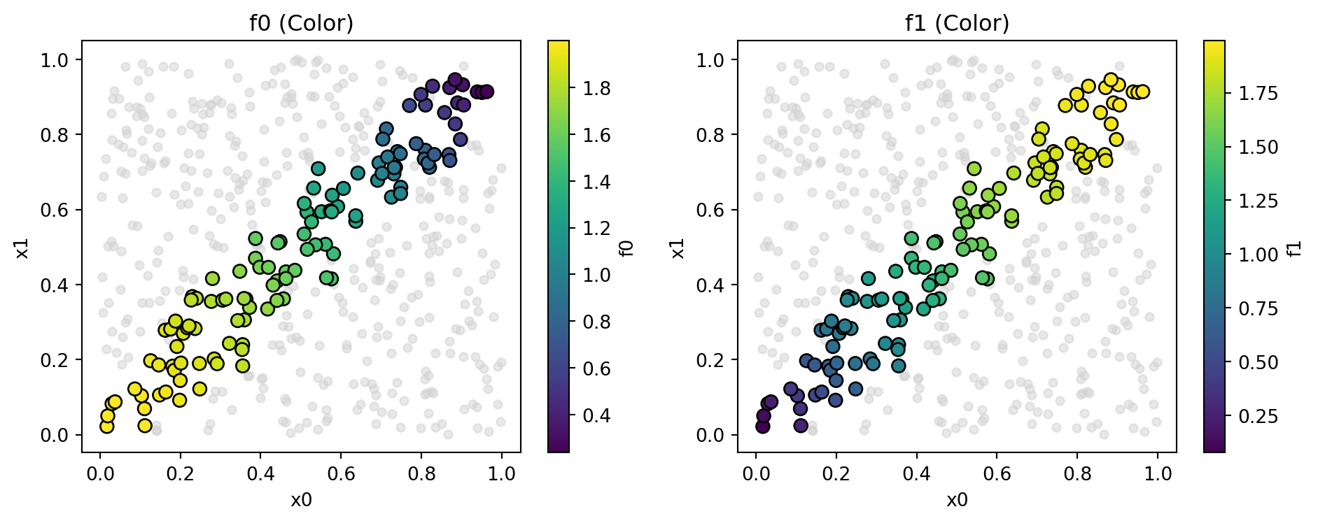 - Pareto set: line \(x = y\) in \([0, 1]\)