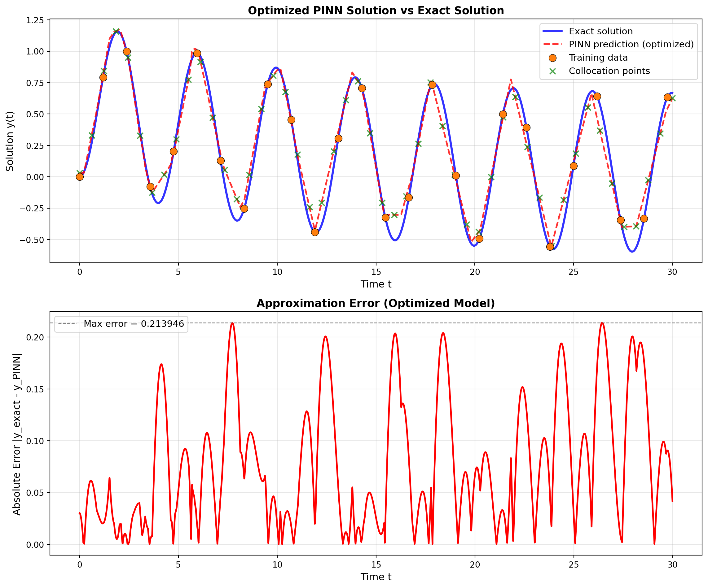 This tutorial demonstrates how to use SpotOptim for hyperparameter optimization of Physics-Informed Neural Networks (PINNs). We’ll optimize the network architecture and training parameters to find the best configuration for solving an ordinary differential equation.