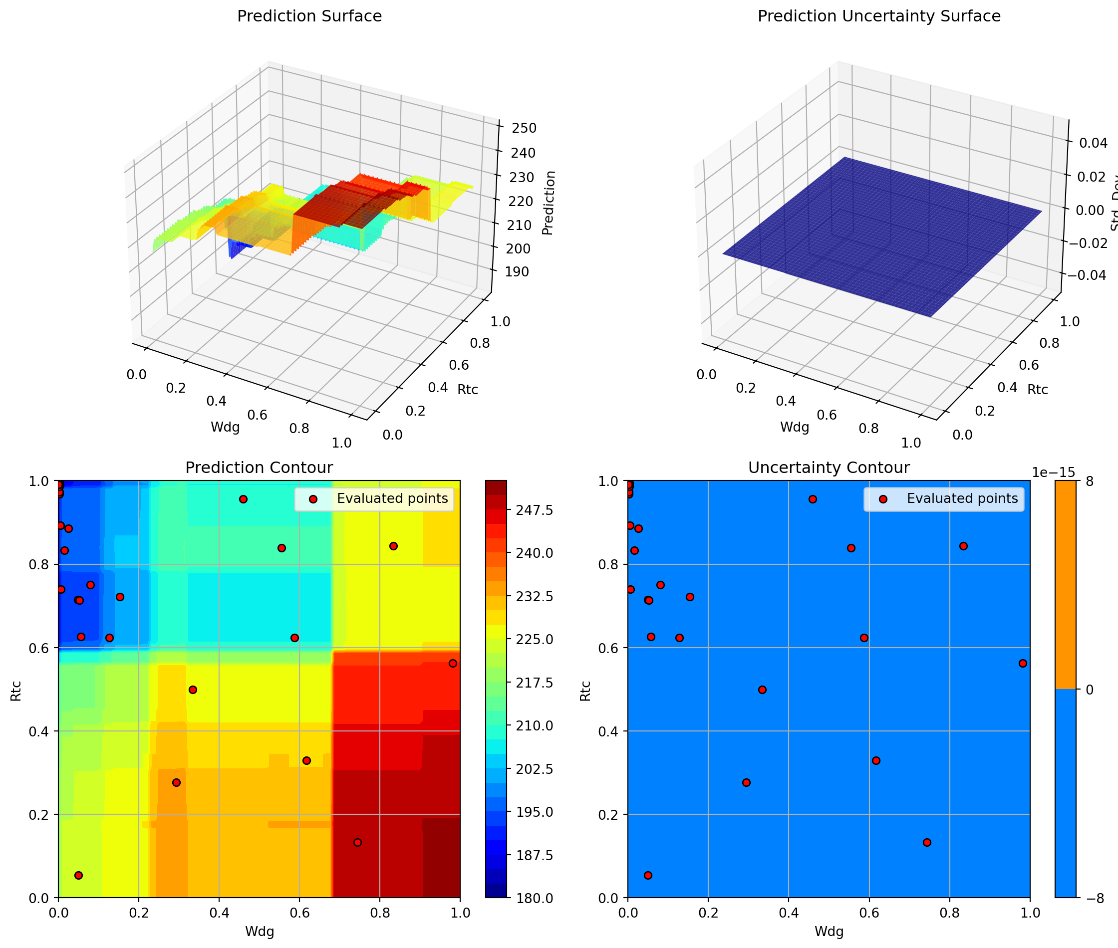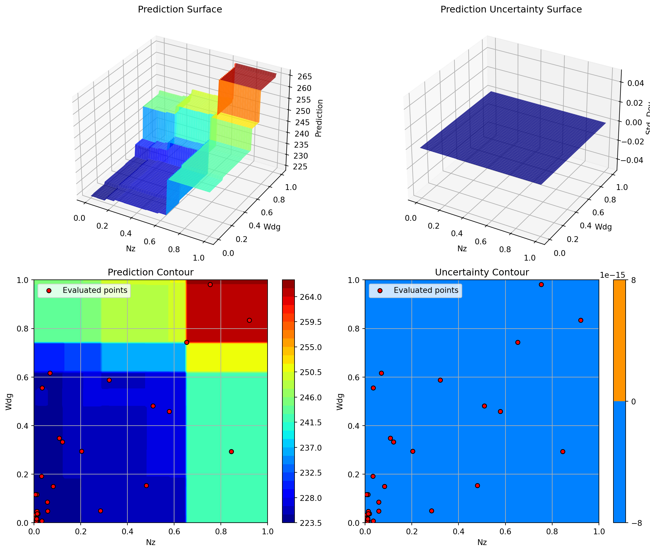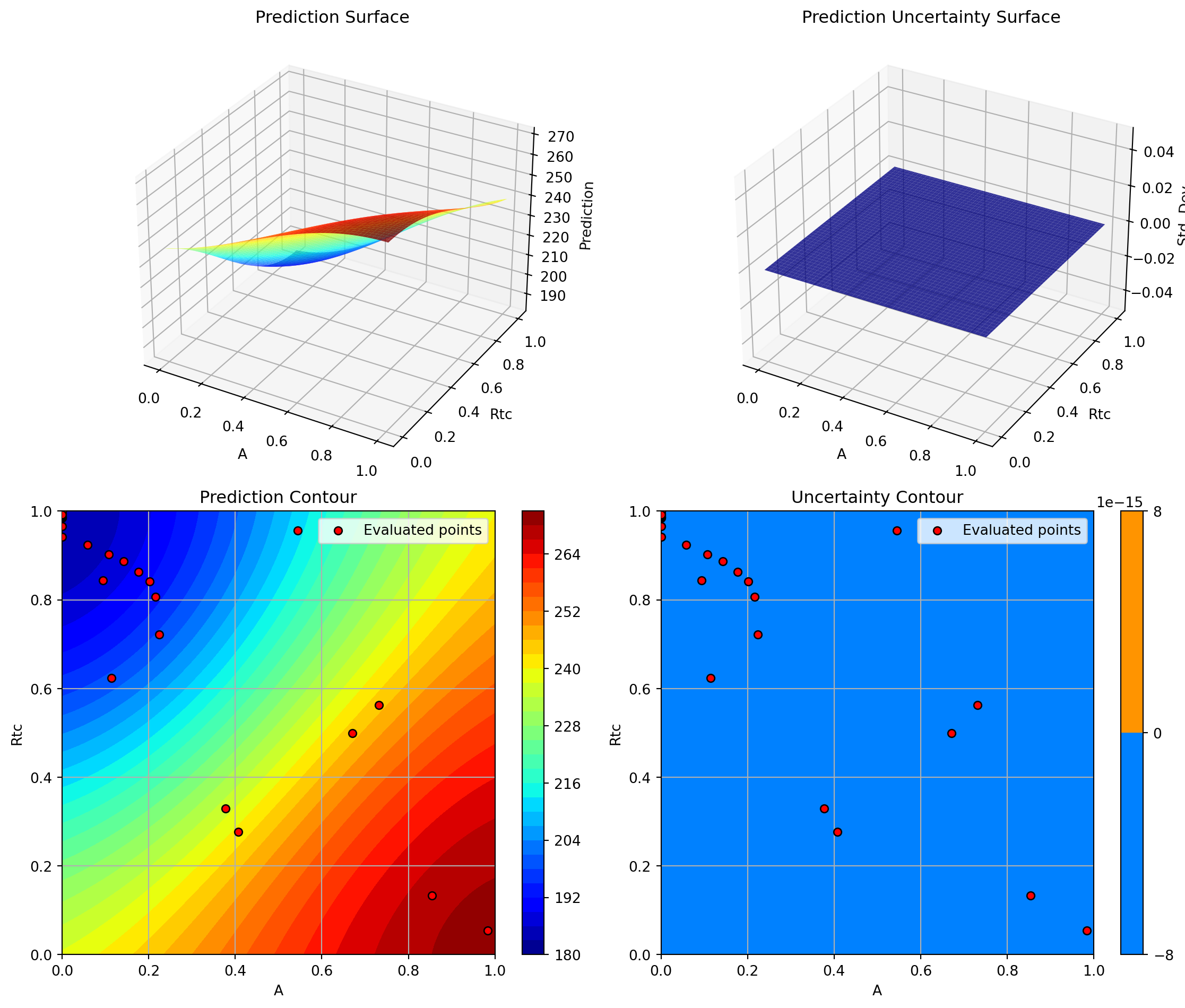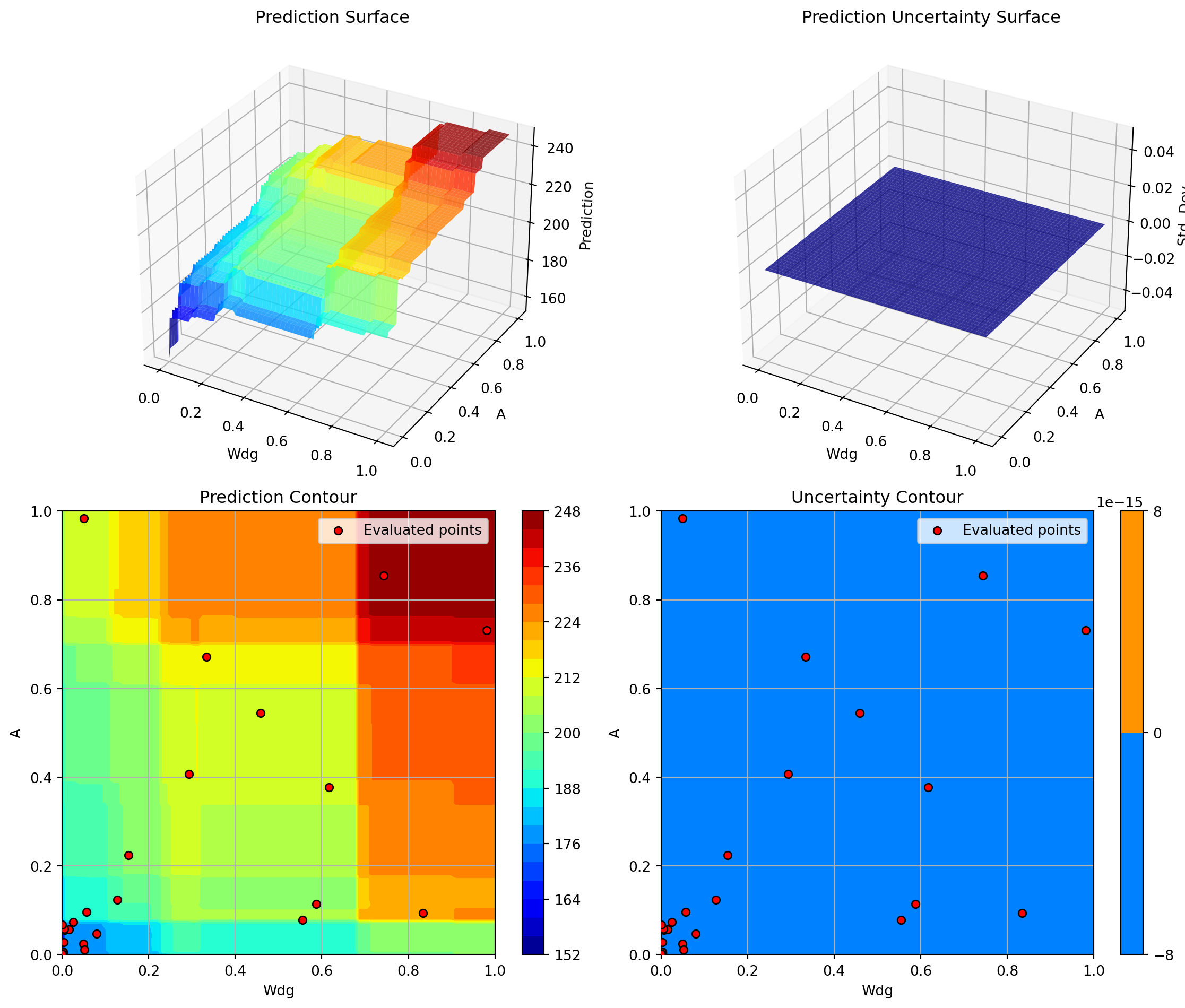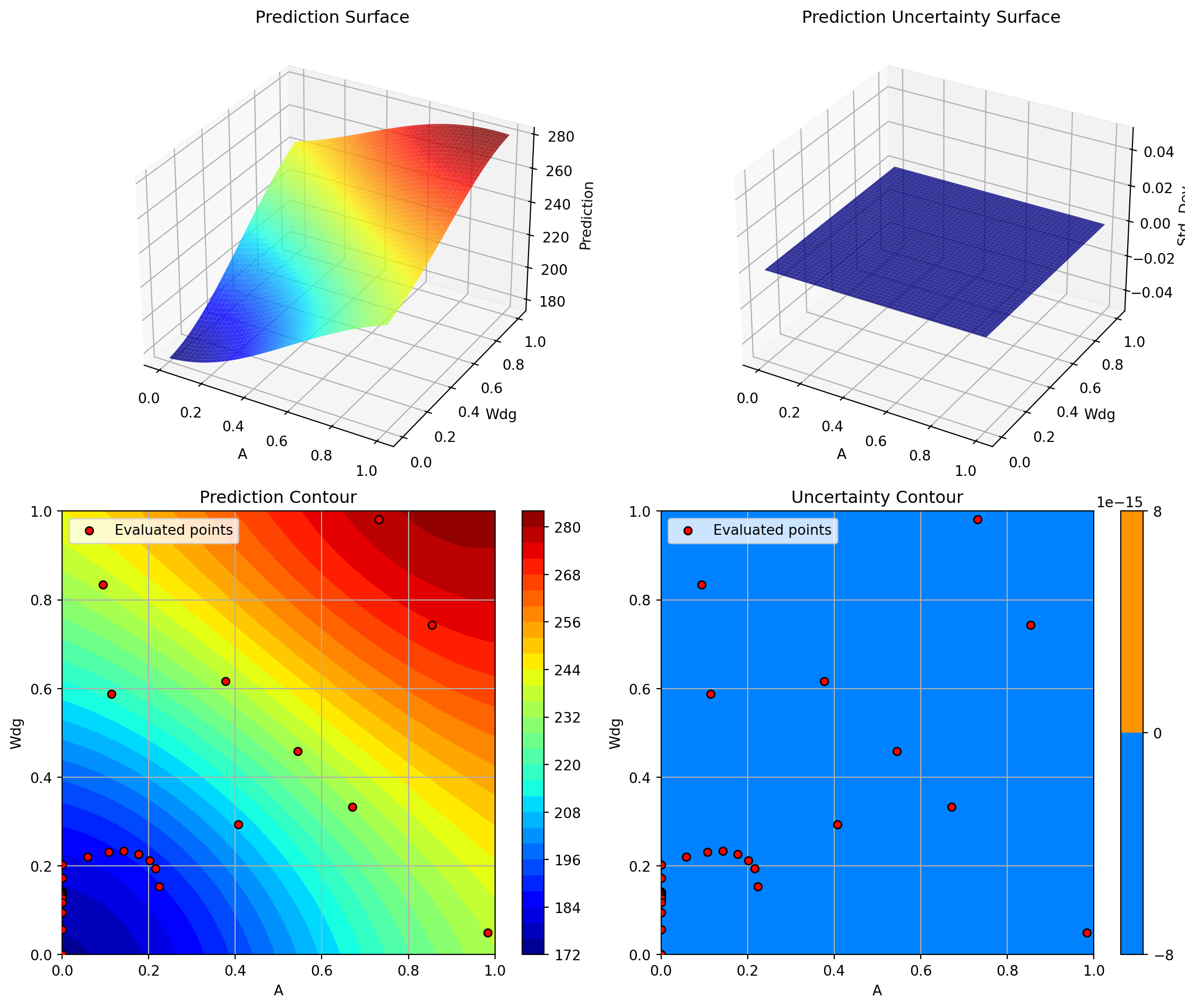 - Kriging: Similar to GP but with customizable correlation functions. Supports EI acquisition.