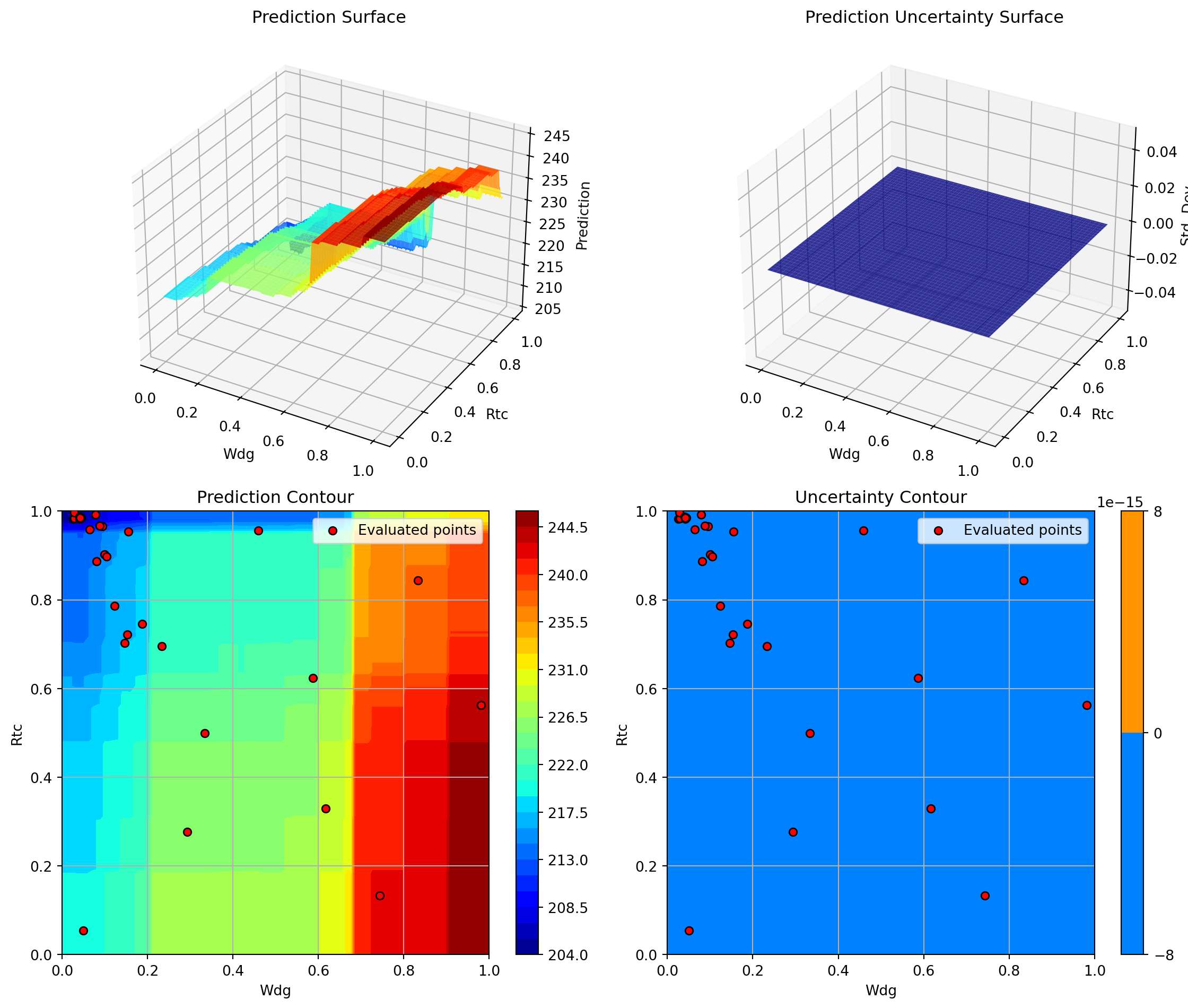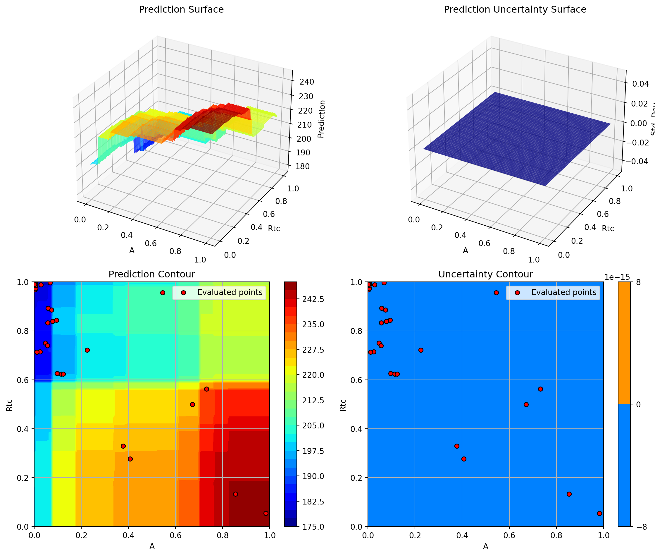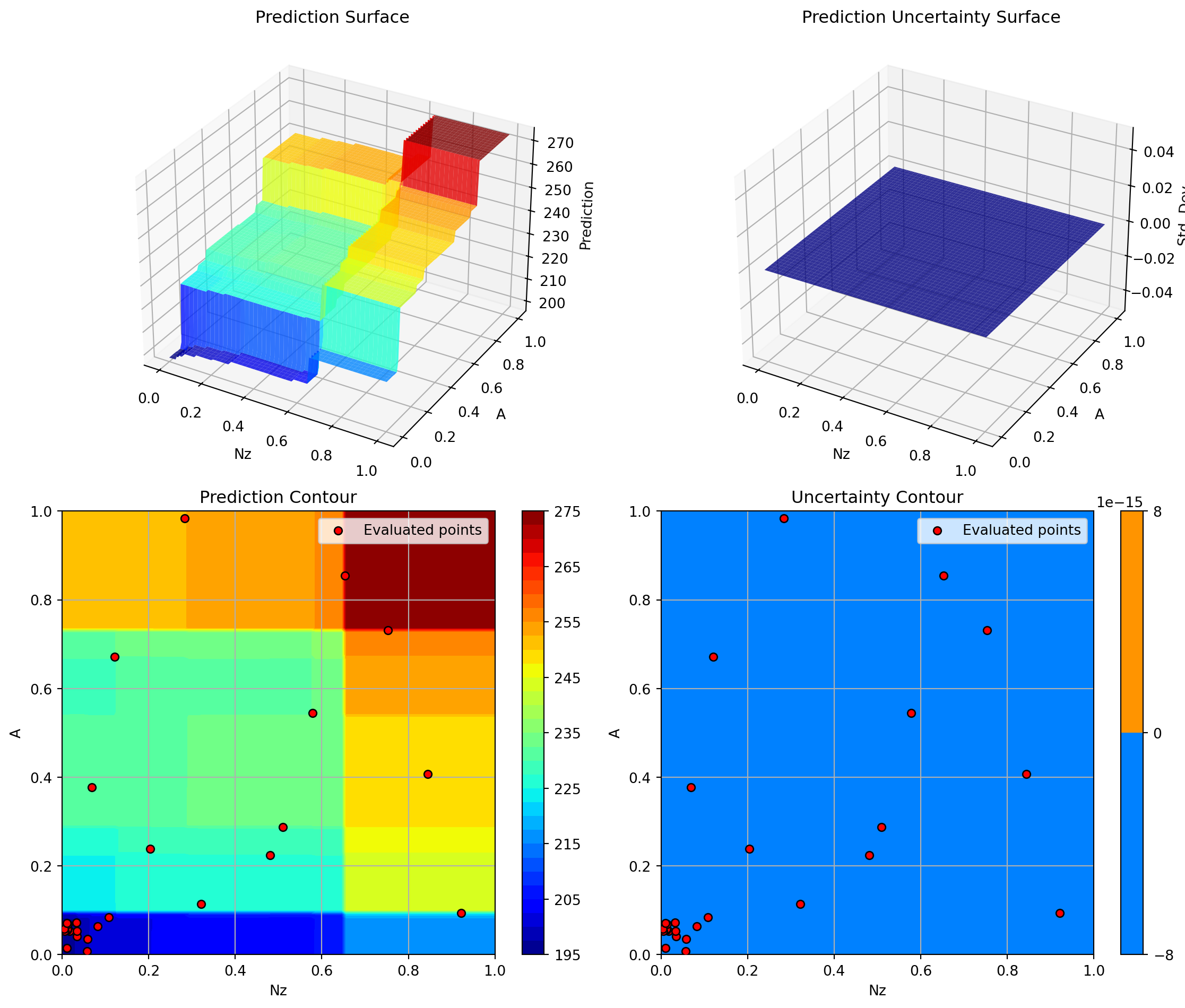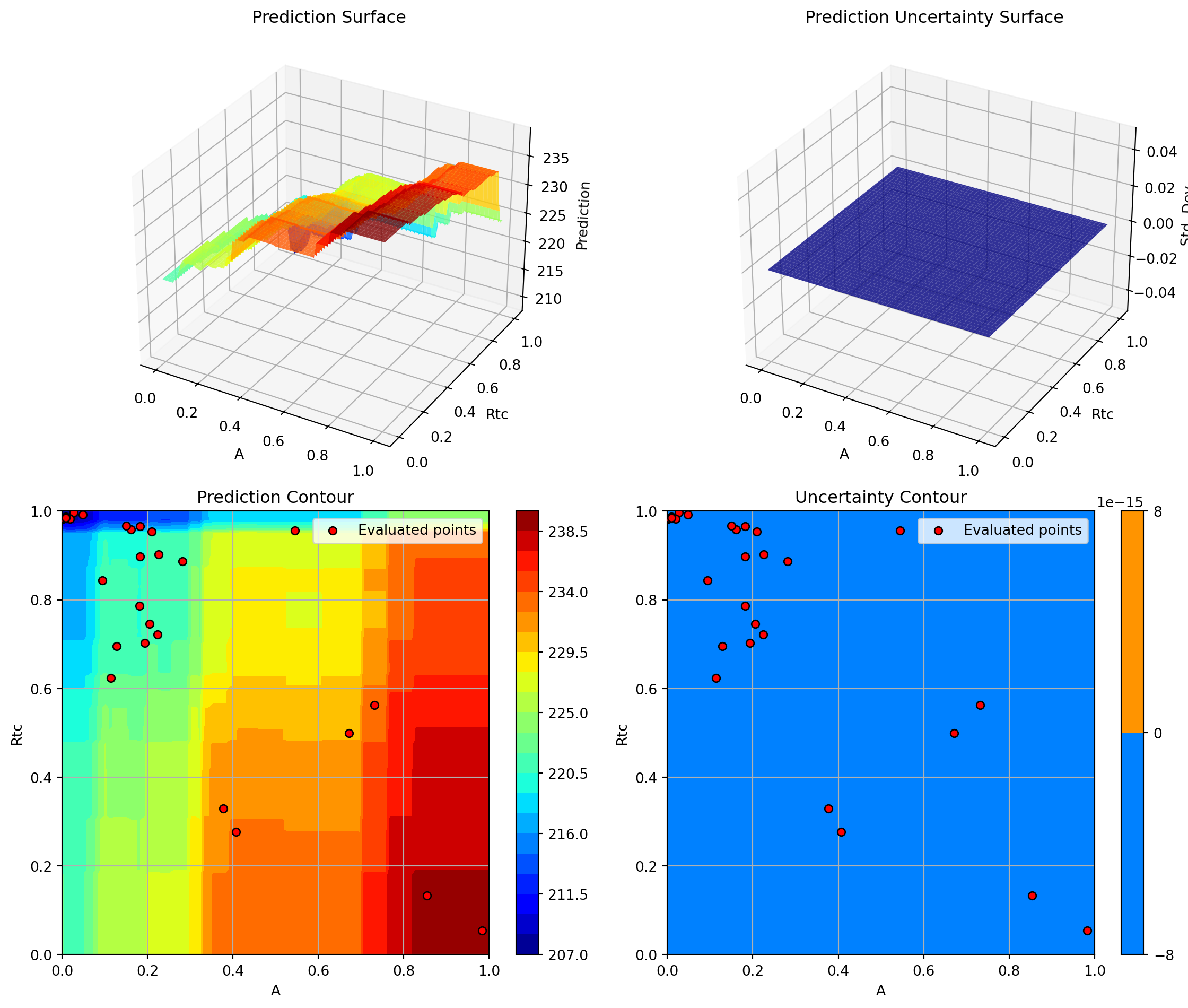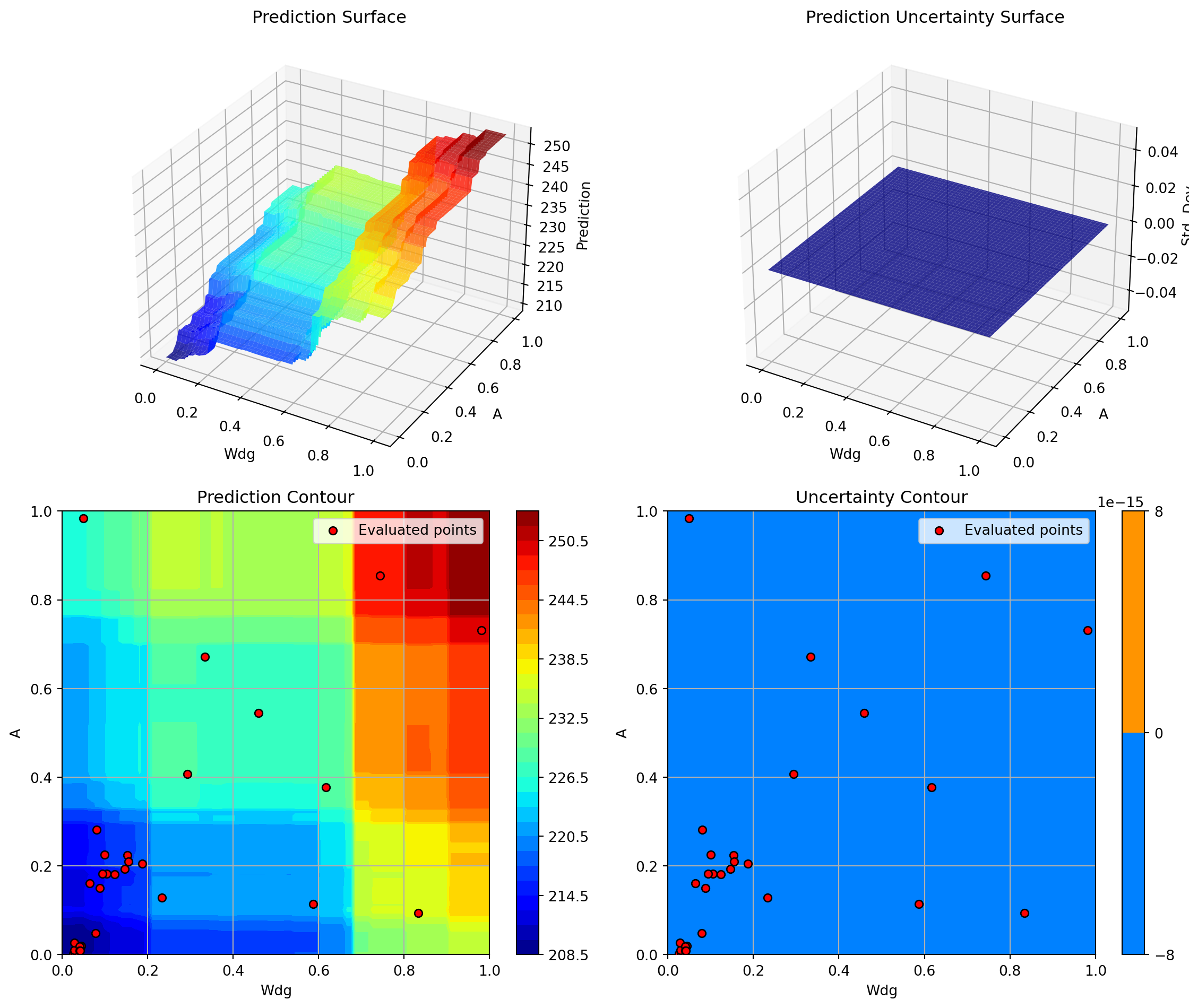 - Kriging: Similar to GP but with customizable correlation functions. Supports EI acquisition.