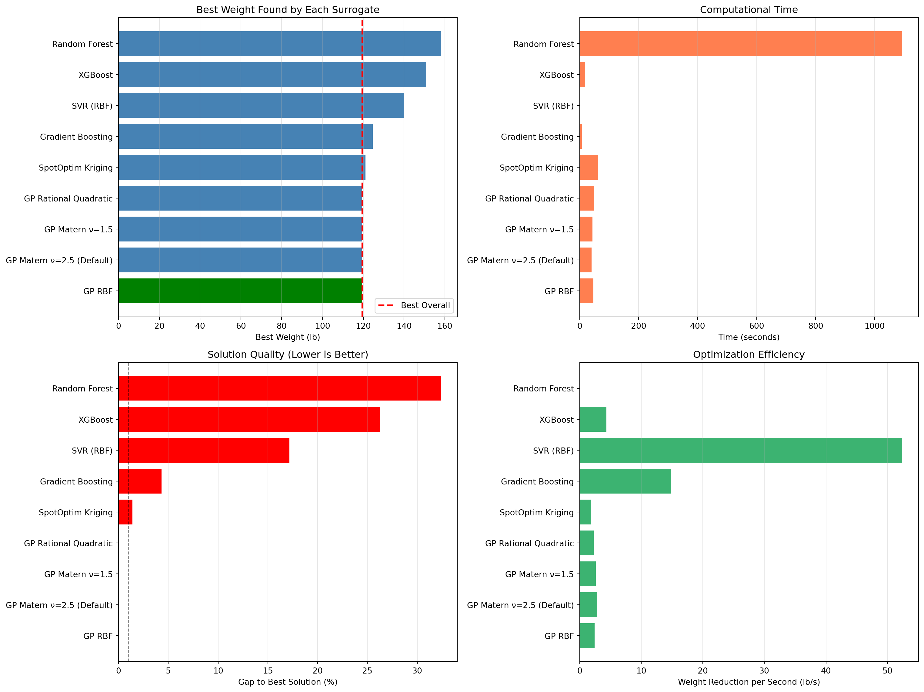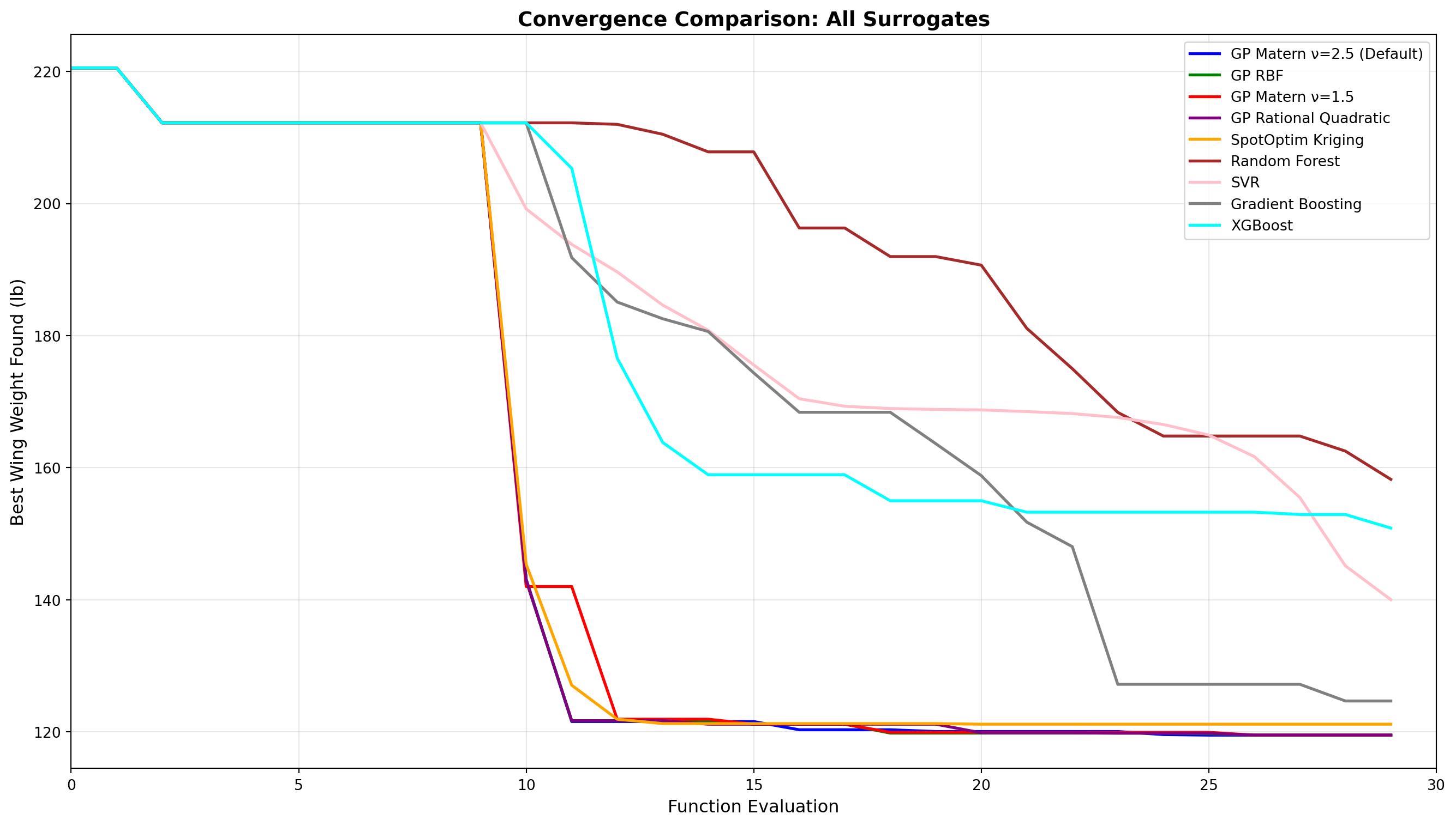 print(gp_results[['Surrogate', 'Best Weight', 'Time (s)']].to_string(index=False))